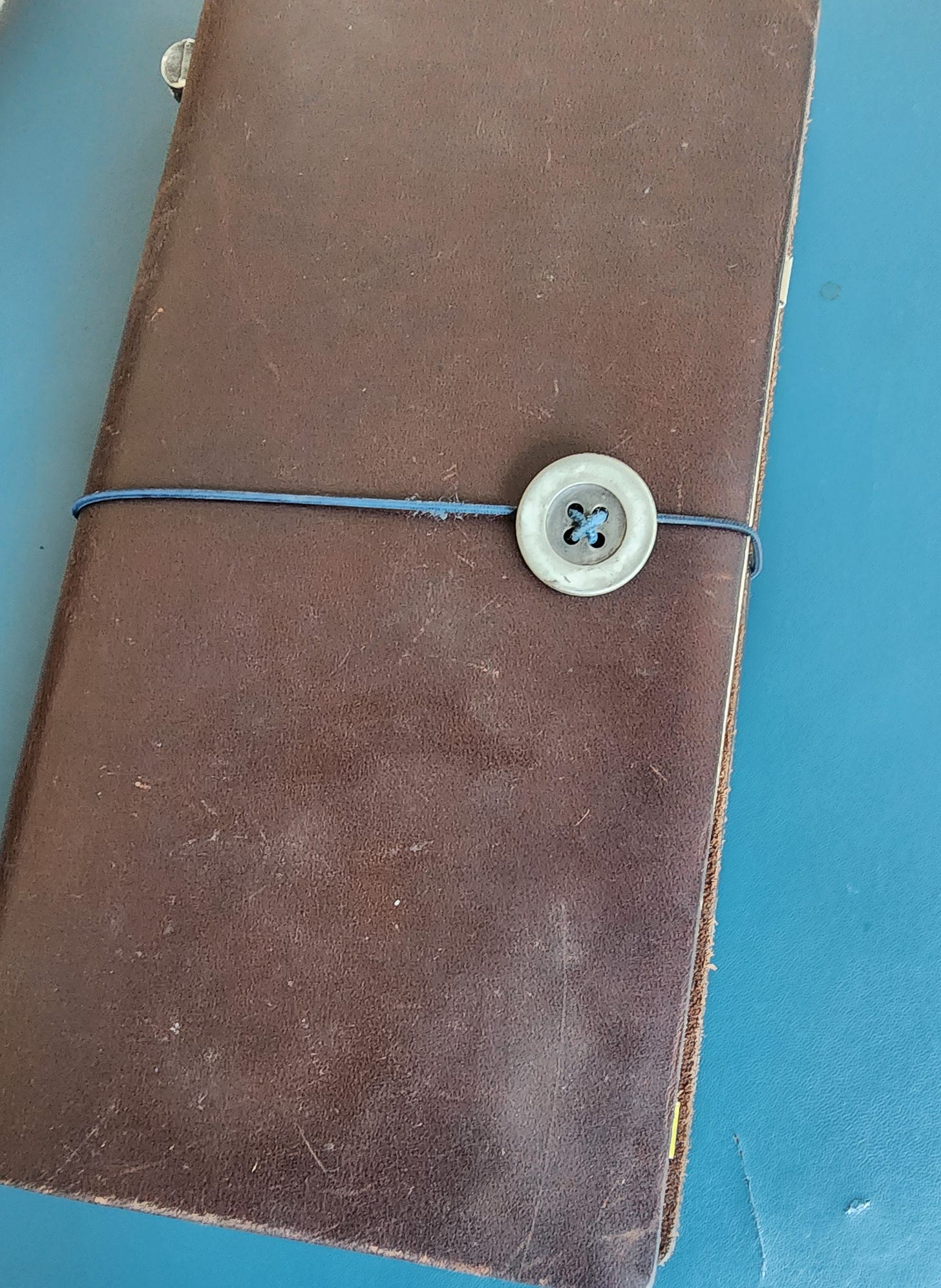 Traveler’s Notebook. Love it. Love it. Love it. And nope, I’m not getting paid for this. Although that would be cool because these little notebooks are not inexpensive, this one was a gift. Still, you can find great off-brand versions at stationery stores and on Amazon. The cool thing about this notebook style is that you can fill it with thin A5 slim notebooks that are held in the cover by elastic bands.